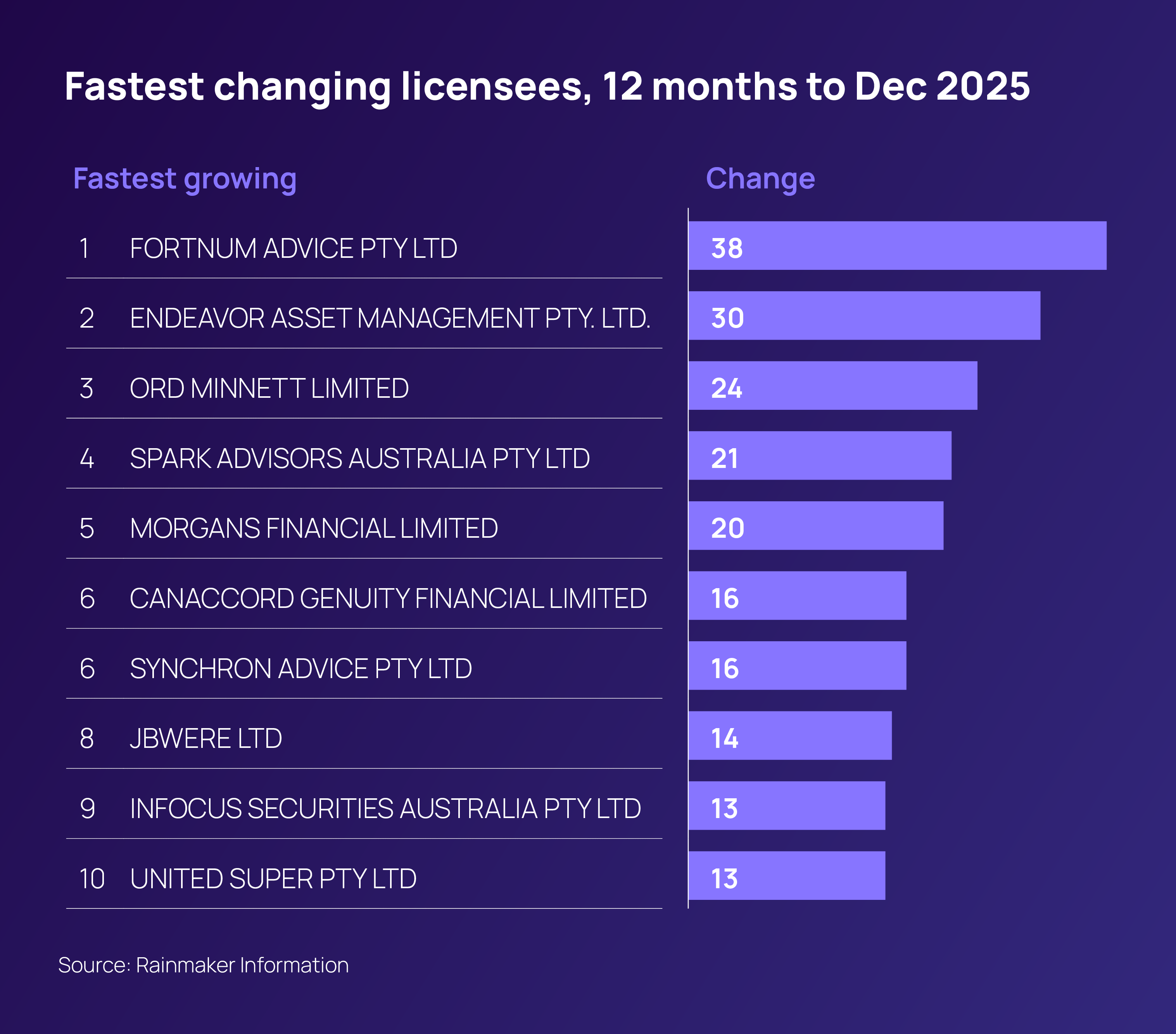 Fortnum Advice added most number of advisers (38) in 12 months to December 2025.